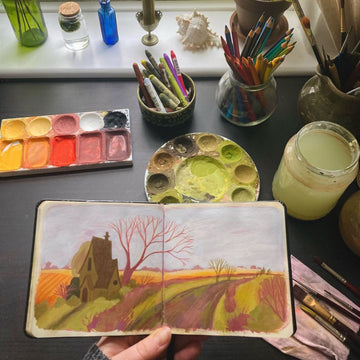 I like to combine stereotypically cute, cosy and creepy subject matter regularly. Whether it be a wholesome wooded landscape, or a rotting skull covered in mushrooms and bugs, I enjoy painting the nitty gritty details of the natural world through a lens of both humour and humble appreciation. Though most of the time I'm really just painting what I think is beautiful and brings me joy!