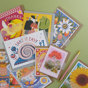 Our greeting cards are now completely plastic free and 100% recyclable! Each card is supplied with a paper belly band and either a recycled or FSC certified envelope.