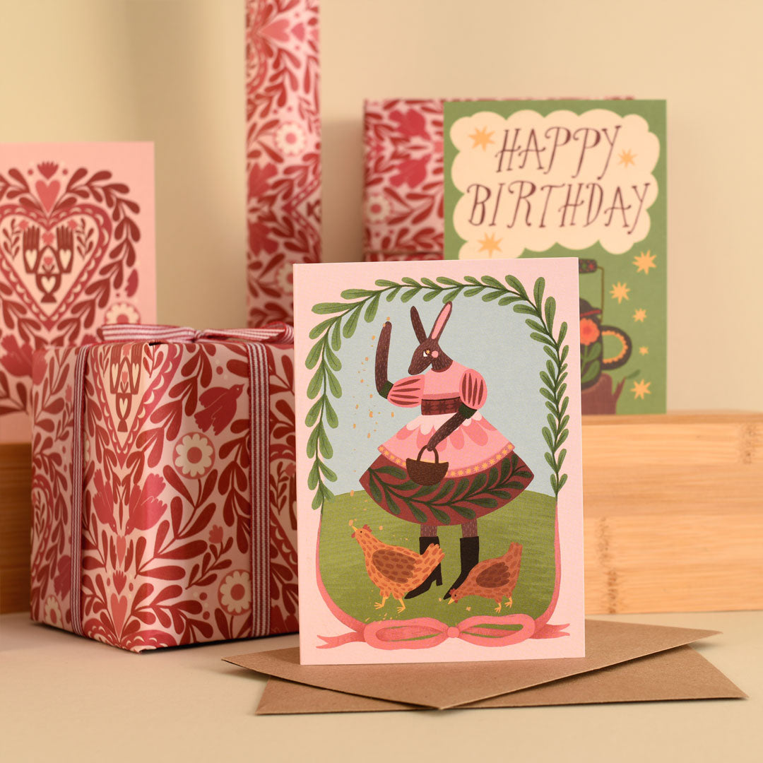 A6 (105mm x 148mm folded), offset litho printed on 300gsm FSC certified card stock, with an eco kraft recycled card, Blank inside for your own message, Designed by ©Hagstone, Published by Printer Johnson, Made in England