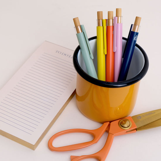 Add a pop of colour to your desk with this stylish orange ballpoint pen. Perfect for writing a special message in a Printer Johnson greeting card, or adding to a Printer Johnson notecard set as a gift.