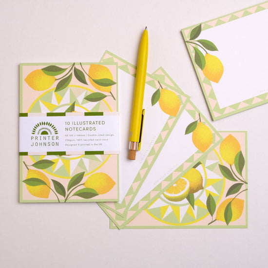 Writing a note is a joy with our notecard sets. They are perfect for everything from a quick thank you to a thoughtful life update. Each set includes 10 double-sided notecards, with one decorative side and one with a border for your message. Printed on premium 350gsm recycled cardstock.