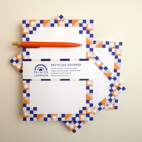 Make note-taking a joy with our printed notepads. Designed with a decorative border on every sheet, they’re perfect for adding a pop of colour to your desk or kitchen counter. You can also use them as unique writing paper.
