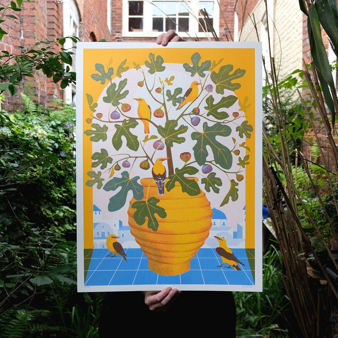 50x70cm, screen print, hand printed on 300gsm acid free Canaletto Velino. Signed and editioned by the artist. Archival quality.