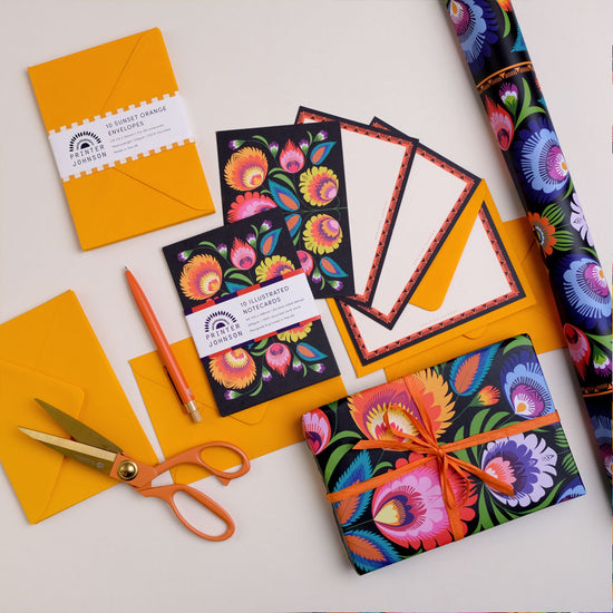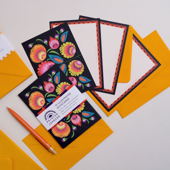Writing a note is a joy with our notecard sets. They are perfect for everything from a quick thank you to a thoughtful life update. Each set includes 10 double-sided notecards, with one decorative side and one with a border for your message. Printed on premium 350gsm recycled cardstock.