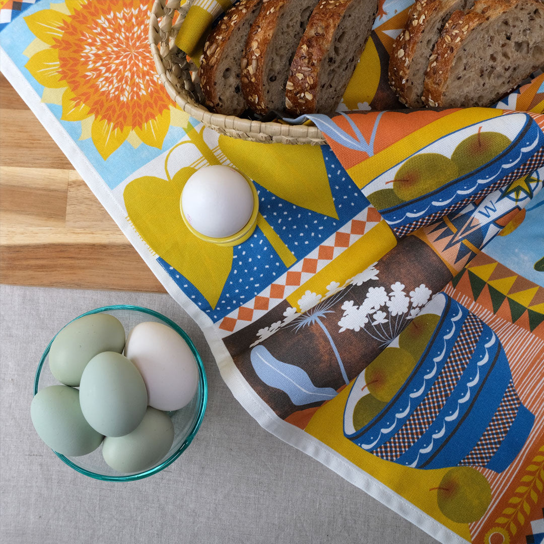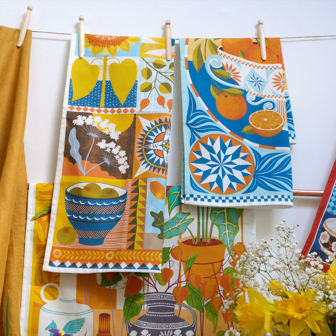 750mm x 600mm, 100% cotton with a hanging loop, Designed by Vicki Johnson, Made in Portugal, manufactured by our kitchen tinware and textiles partner Elite Tins