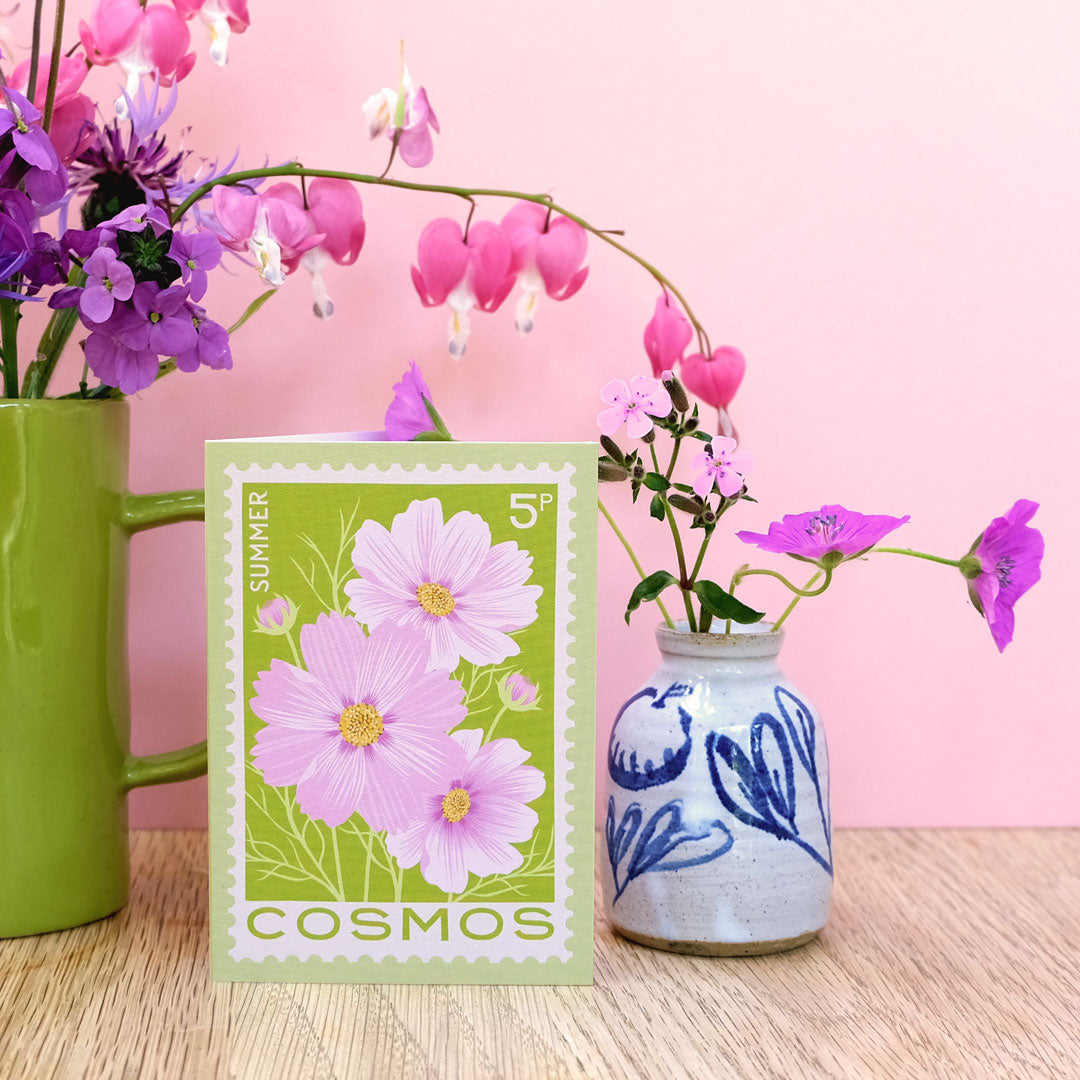 A7 (74mm x 105mm folded), offset litho printed on 300gsm FSC certified card stock, with an Eco Kraft recycled envelope, Blank inside for your own message, Designed by ©Vicki Johnson, Published by Printer Johnson, Made in England