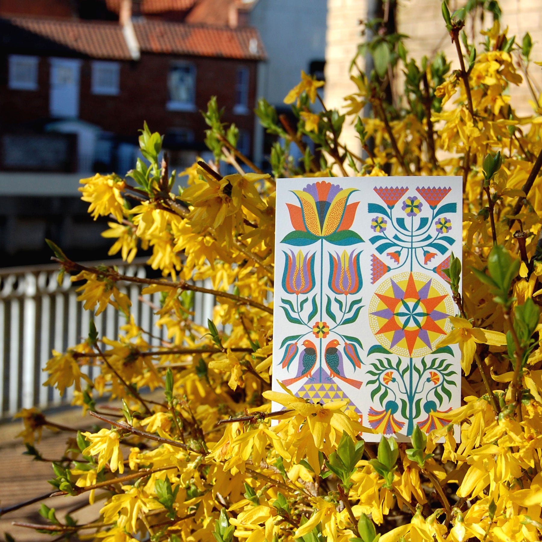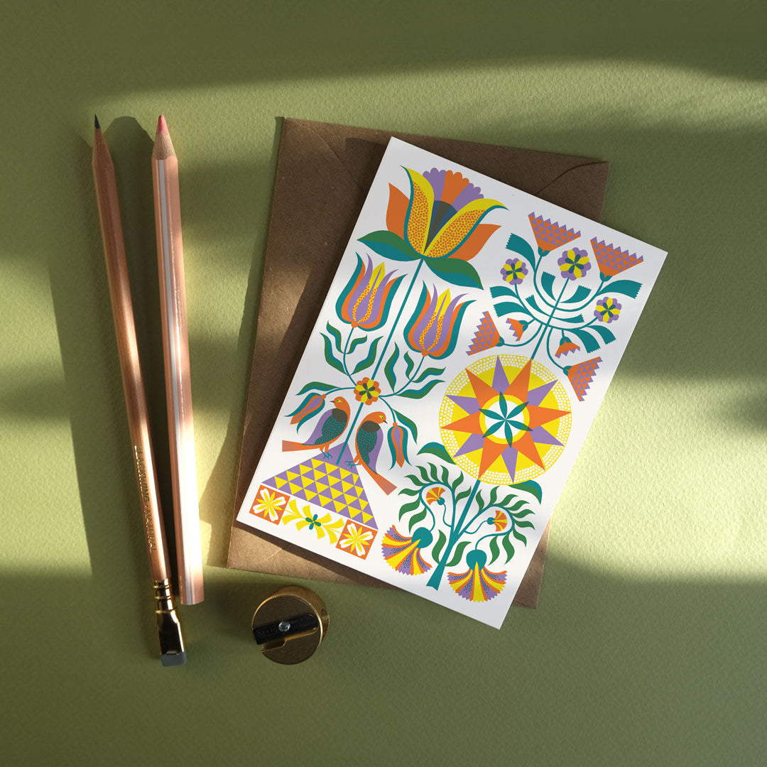 A6 (105mm x 148mm folded), offset litho printed on 300gsm FSC certified card stock, with an Eco Kraft recycled envelope, Blank inside for your own message, Designed by ©Vicki Johnson, Published by Printer Johnson, Made in England