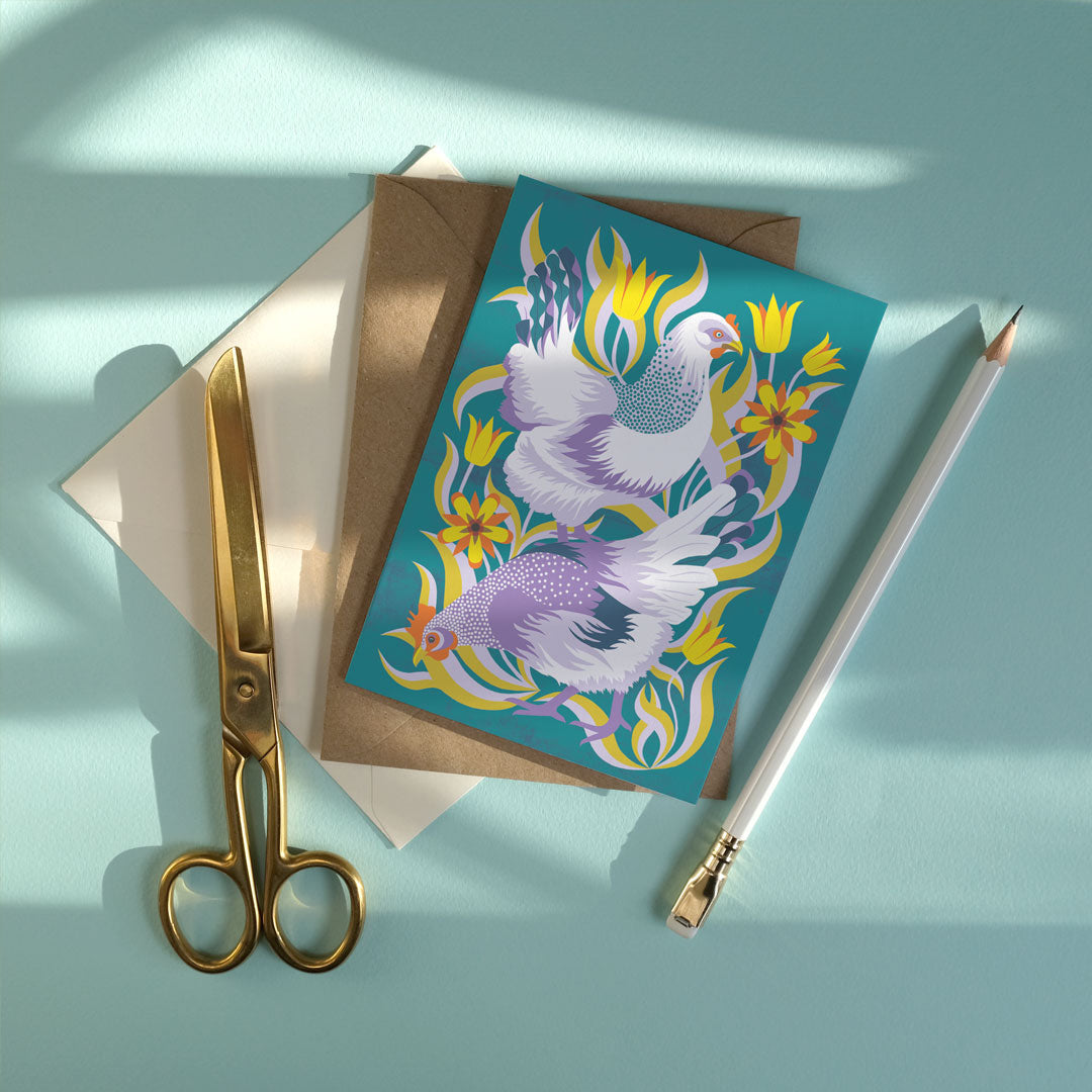 Printer Johnson, Vicki Johnson | Hens, Greeting Card